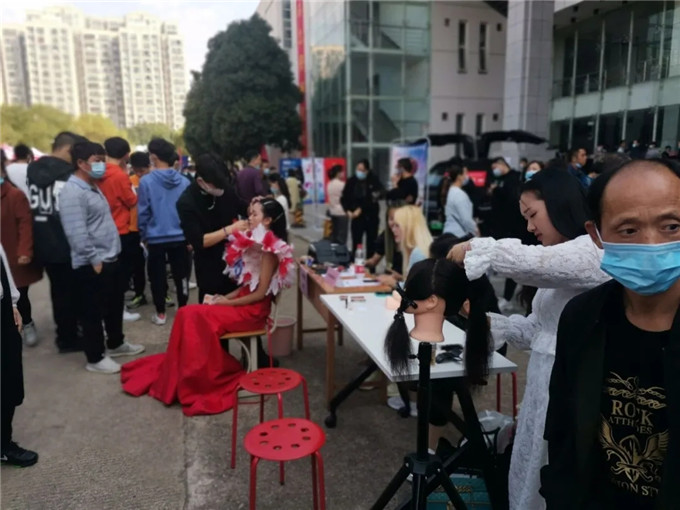 图书馆报到大厅外摆起擂台