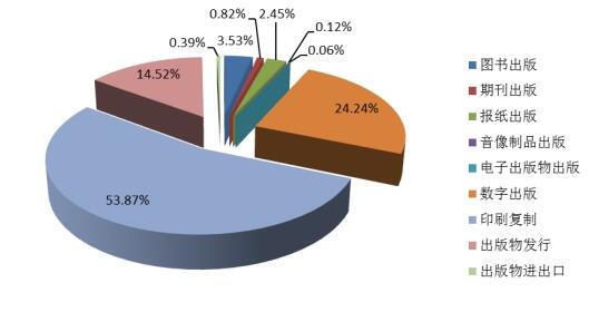 印刷复制、数字出版和出版物发行分居收入前三位,数字出版占比提高。印刷复制、数字出版和出版物发行三者营业收入合计21859.1亿元,较2015年增长9.9%,占全行业营业收入的92.7%,提高0.9个百分点。其中,数字出版占24.2%,提高3.9个百分点;印刷复制和出版物发行收入占比则有所下降。
